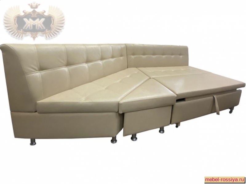 Если радиусный диван предполагается расположить в кухне, лучше выбрать модульную модель с возможностью компоновки секций в нужном порядке.