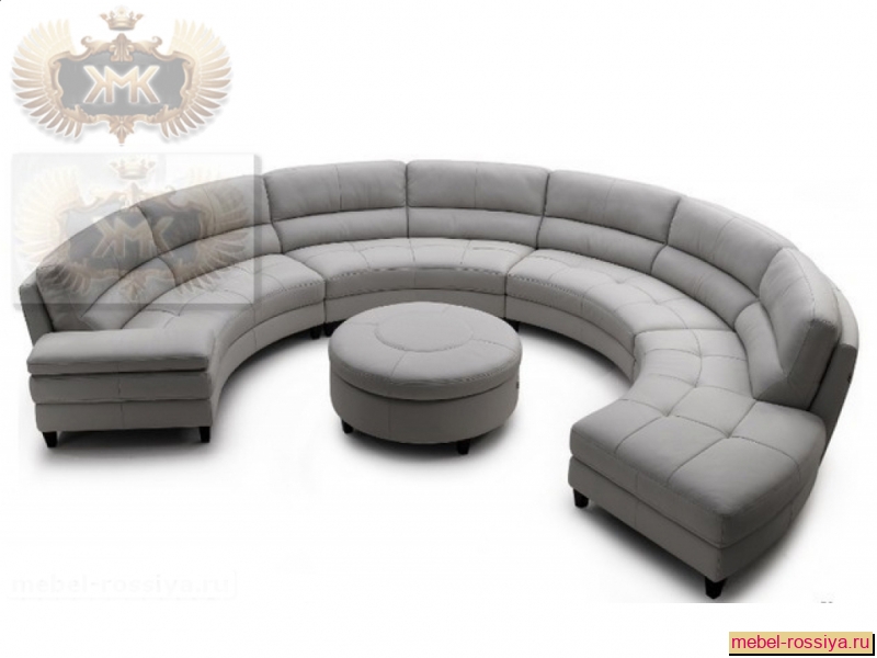 Полукруглая модель дивана это не просто оригинальное украшение гостиной, но и уютное функциональное с неординарным дизайном и очертанием место для размещения гостей. Наше собственное производство позволит получить разные виды радиусных диванчиков.